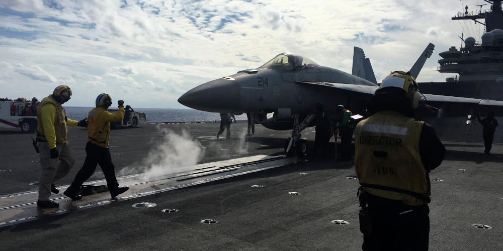Πρόκειται για ένα F/A-18 από το αεροπλανοφόρο «USS Ronald Reagan» το οποίο βρέθηκε στην θάλασσα με τους δύο πιλότους να διασώνονται.