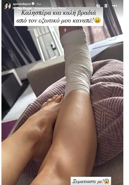 «Ένα διάστρεμμα είναι από ατύχημα που είχε στα σκαλιά. Είχα πολύ άσχημη πτώση. Ευτυχώς δεν χρειάστηκε να γίνει κάτι χειρότερο…» ανέφερε αρχικά η Αποστολία Ζώη.