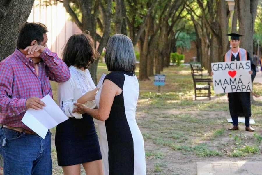 Το 2018 τελικά έφτασε η στιγμή. Οι γονείς του δεν ήξεραν πότε θα τελείωνε τις σπουδές του. Οργάνωσε λοιπόν μια φωτογράφηση. Στο βίντεο που θα δείτε παρακάτω, μπορείτε να τον δείτε στο βάθος της εικόνας να κρατά μια πινακίδα, με την οποία ευχαριστεί τους γονείς του. Τους έγραψε ένα γράμμα (αυτό δεν καταλαβαίνουμε, αλλά δεν πειράζει) και δυο εισιτήρια για την αποφοίτησή του.