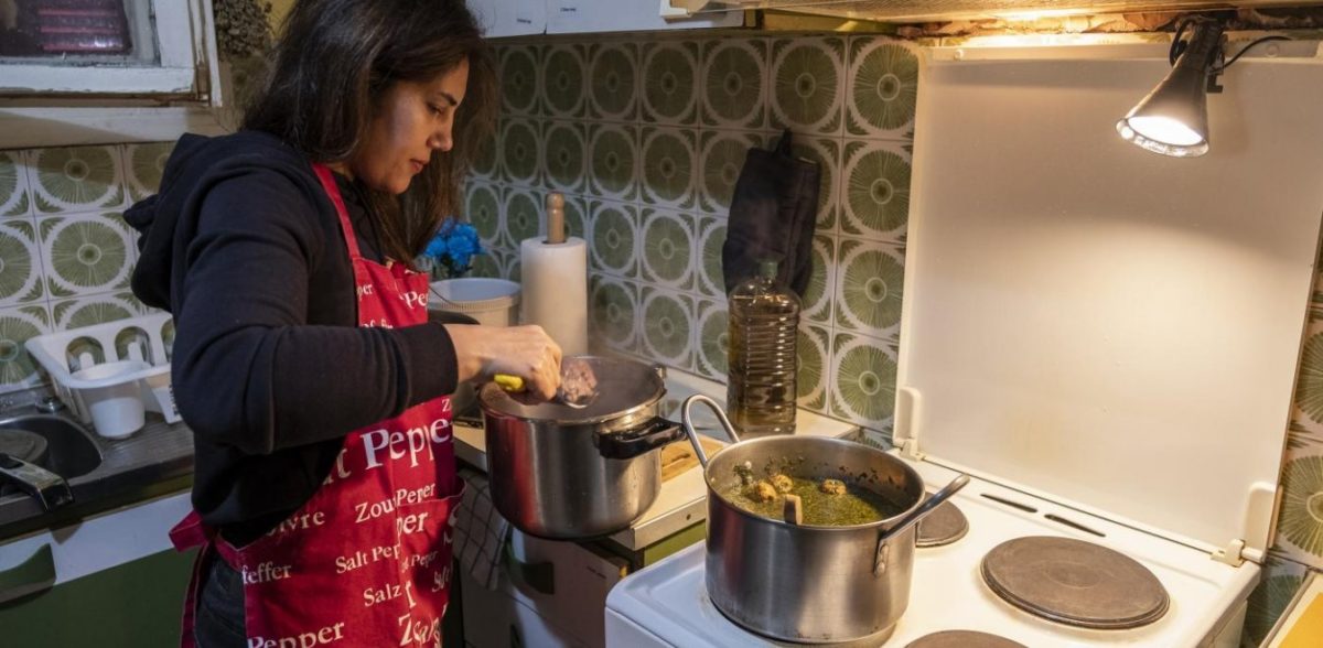 Τυλίγει τους πατατοκεφτέδες που τηγάνισε σε ένα κομμάτι πίτας και προσθέτει λαχανικά. Τους βάζει σε μια πλαστική σακούλα μαζί με μερικά σάντουιτς και φρούτα και βγαίνει έξω. Πριν, όμως, το κάνει, δοκιμάζει το φαγητό της. «Νιώθω σαν στο σπίτι μου έτσι. Η Ελλάδα μας έδωσε μια καινούρια ζωή» λέει η ίδια. Κάθε φορά ετοιμάζει περίπου 20 τέτοιες σακούλες.