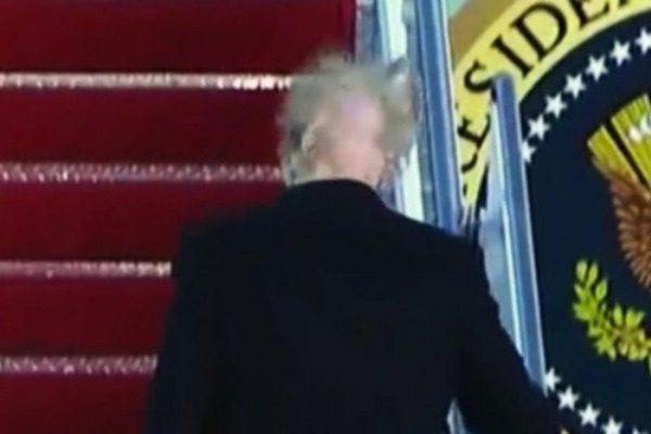 Πρόκειται για βίντεο που δείχνει τον πρόεδρο των ΗΠΑ να επιβιβάζεται στο Air Force One. Τα μποφόρ όμως αποκαλύπτουν μια ενοχλητική αλήθεια για τα μαλλιά του πλανητάρχη.