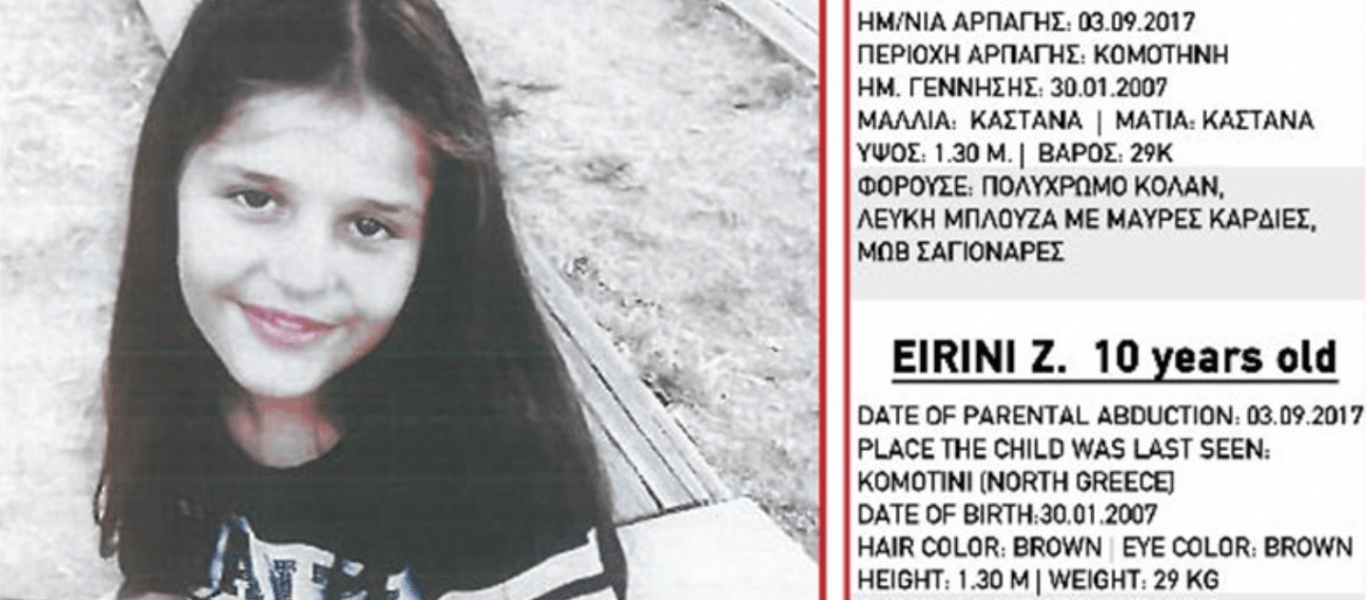 Σύμφωνα με την ανακοίνωση της εξαφάνισης της, η 10χρονη Ειρήνη με ευθύνη του πατέρα της απομακρύνθηκε στις 3 Σεπτεμβρίου από το περιβάλλον στο οποίο ζούσε με την μητέρα της στην Κομοτηνή. Η μητέρα της δήλωσε την εξαφάνιση στις Αρχές και άρχισε η αναζήτηση της σε όλη την Ελλάδα.