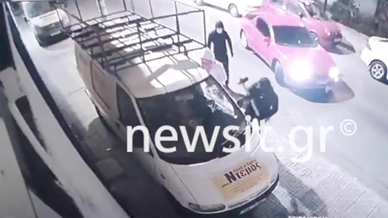 Μέσα από αυτό θα αποβιβαστούν τρία άτομα, εκ των οποίων το ένα θα σπάσει το τζάμι από ένα άσπρο βανάκι που είναι σταθμευμένο μπροστά από το κατάστημα που έχει στοχοποιηθεί από το κουαρτέτο των δραστών.