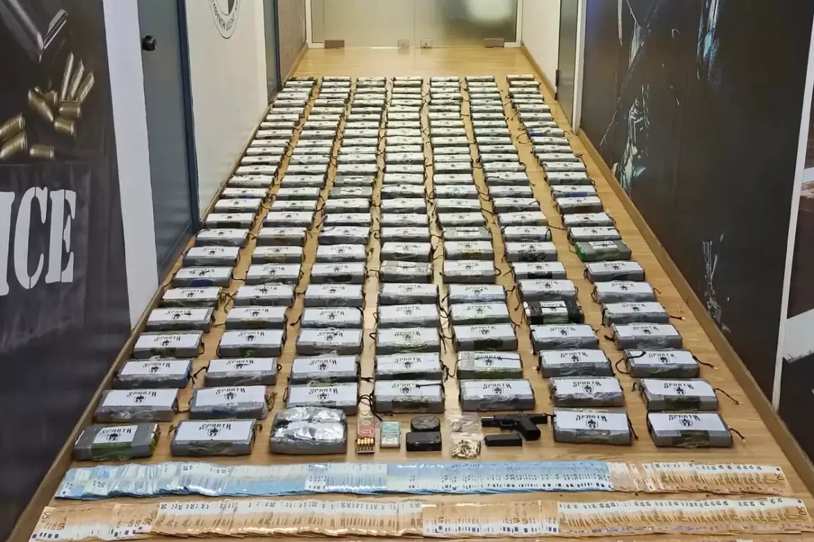 Για τον τερματισμό της δράσης τους, πραγματοποιήθηκε αστυνομική επιχείρηση πρωινές ώρες χθες, Τετάρτη 22/05/2024, κατά τη διάρκεια της οποίας εντοπίστηκε ο 48χρονος και στην κατοχή του βρέθηκαν με σκοπό την περαιτέρω διακίνηση -180- αυτοσχέδιες νάιλον συσκευασίες με περιεχόμενο κοκαΐνη, συνολικού μικτού βάρους -210- κιλών και -300- γραμμαρίων.