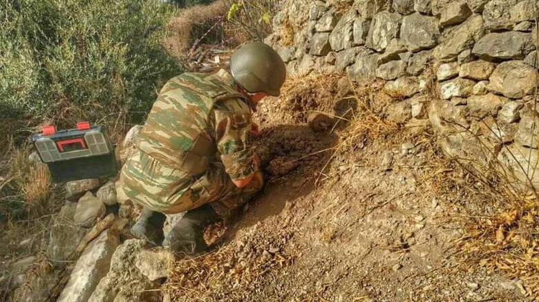 Γερμανική νάρκη τύπου S-35 βρέθηκε το απόγευμα της Κυριακής από κάτοικο της περιοχής που εκτελούσε γεωργικές εργασίες.