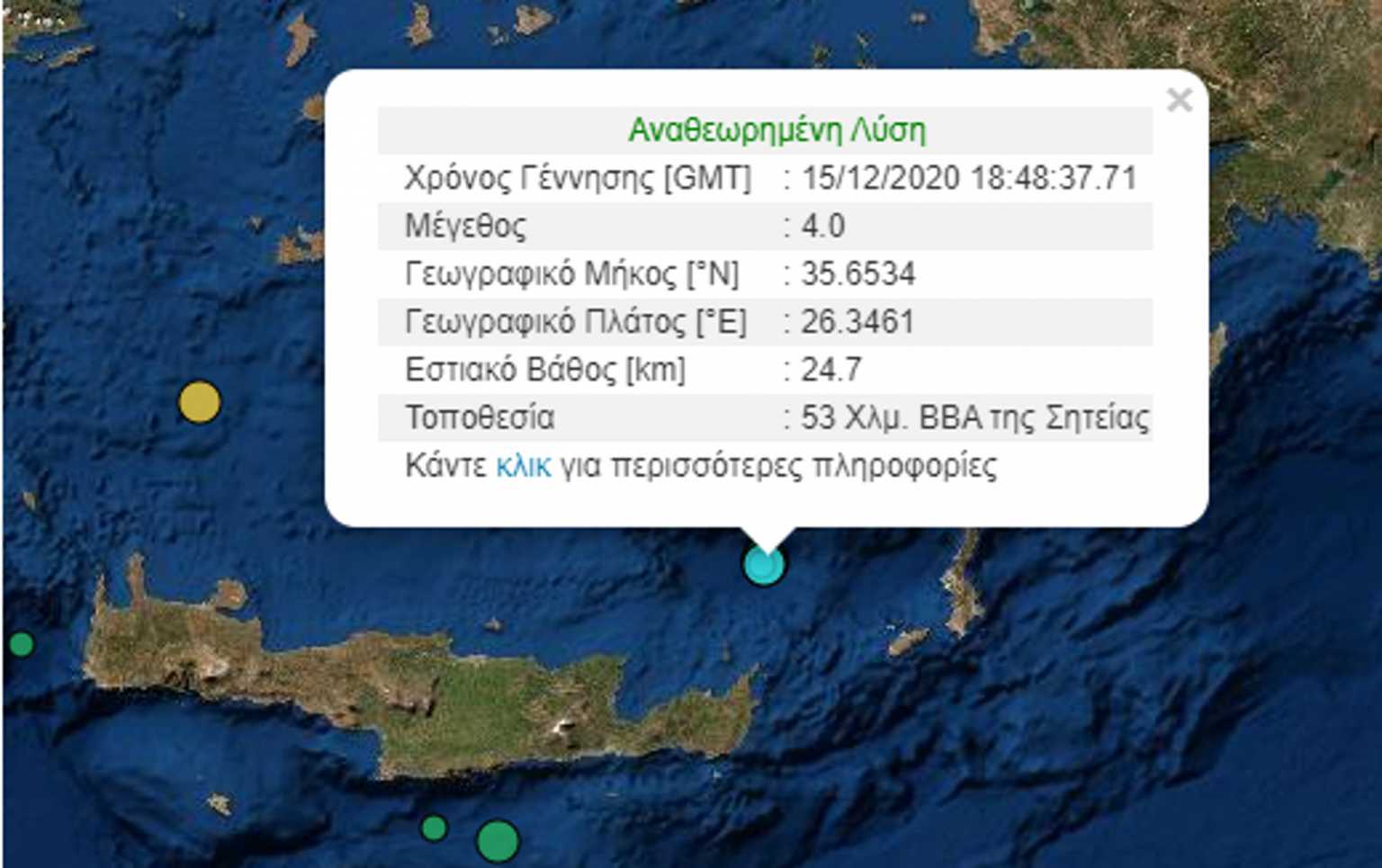 Σεισμός αναστάτωσε το βράδυ της Τρίτης (15.12.2020) την Κρήτη και συγκεκριμένα την περιοχή της Σητείας.