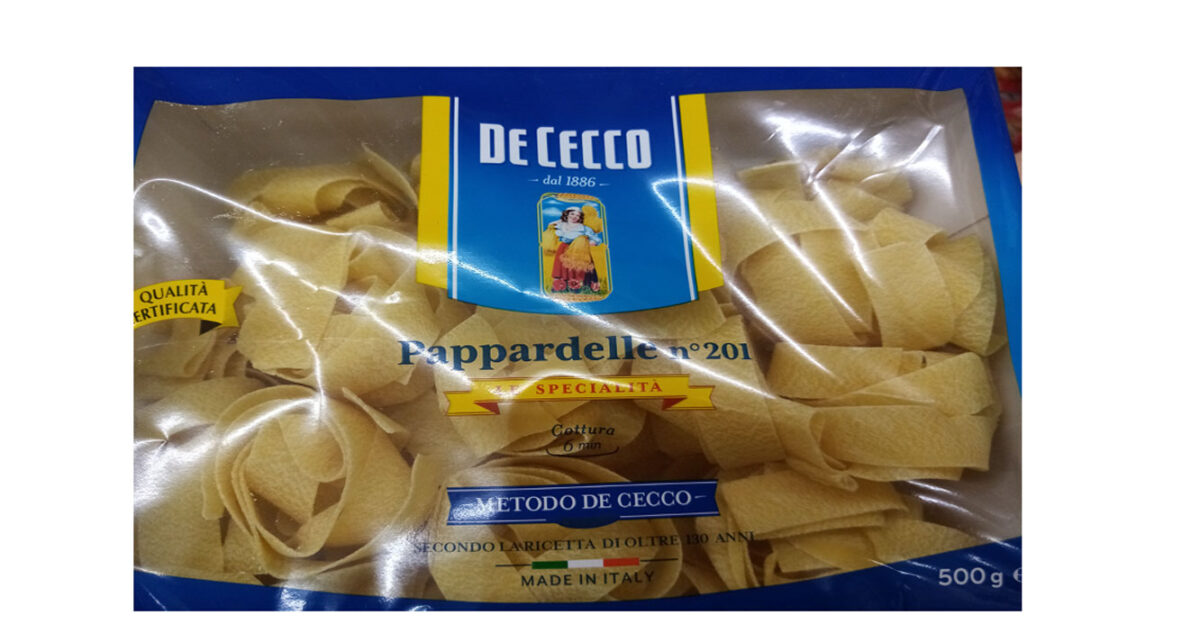 Ο Ε.Φ.Ε.Τ. και ειδικότερα η Περιφερειακή Διεύθυνση Θεσσαλίας, στο πλαίσιο διερεύνησης καταγγελίας διαπίστωσε τη διακίνηση του προϊόντος : Pappardelle de Cecco με ημ. λήξης: 14/09/2022, στην επισήμανση του οποίου στα αγγλικά αναγράφεται η ένδειξη: may contain eggs and soy, ενώ στην αντίστοιχη ελληνική επισήμανση η οποία είναι τοποθετημένη με αυτοκόλλητη ετικέτα κοντά στο ξενόγλωσσο κείμενο αναγράφεται μόνο η ένδειξη πιθανόν να περιέχει ίχνη σόγιας. Η αναγραφή για την πιθανή παρουσία αυγού στο προϊόν έχει παραληφθεί και ως εκ τούτου το προϊόν καθίσταται μη ασφαλές για την ομάδα ανθρώπων που εμφανίζει αλλεργία στο αυγό.