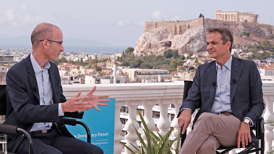 Kατά τη συζήτησή του με τον ιστορικό και συγγραφέα Yuval Noah Harari, υπό τον συντονισμό της Liz Alderman, υπεύθυνης οικονομικών ειδήσεων της εφημερίδας «New York Times», ο Πρωθυπουργός Κυριάκος Μητσοτάκης, μεταξύ άλλων, ανέφερε: