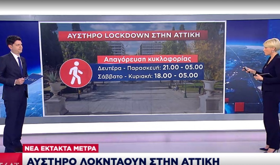 Αναλυτικότερα παραμένει η απαγόρευση κυκλοφορίας από τις 21. 00 το βράδυ μέχρι τις 05.00 το πρωί από Δευτέρα έως Παρασκευή. Η απαγόρευση της κυκλοφορίας για το Σάββατο και την Κυριακή ξεκινά στις 6 το απόγευμα και ισχύει μέχρι τις 5 το πρωί στην Αττική, Θεσσαλονίκη και Χαλκιδική.