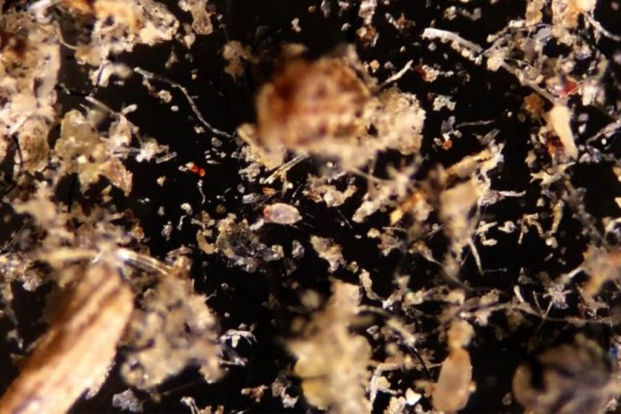 Το βίντεο δείχνει τα μικροσκοπικά και σχεδόν διαφανή πλάσματα, καθώς κινούνται μέσα από σωματίδια σκόνης σε αναζήτηση τροφίμων.