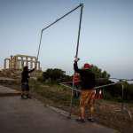 Αρχισαν με το πρώτο φως της ημέρας στο Ναό του Ποσειδώνα, στο Σούνιο, τα γυρίσματα της παραγωγής του BBC για τη σειρά «Μικρή τυμπανίστρια» του Τζον Λε Καρέ, που θα προβληθεί σε 80 χώρες.