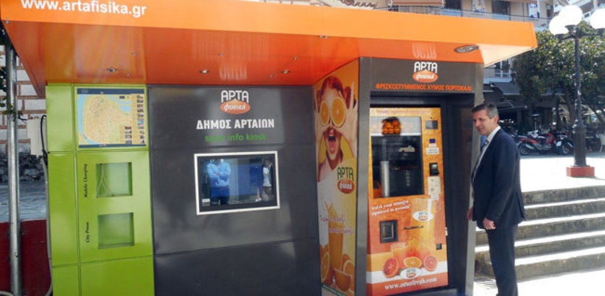 Στο επιτυχημένο µοντέλο των αυτόµατων πωλητών, οι οποίοι παρουσιάζουν εντυπωσιακή ανάπτυξη τα τελευταία χρόνια, αποφάσισε να επενδύσει ο Αγροτικός Συνεταιρισµός Εκµετάλλευσης Ακτινιδίων Αρτας, σε µια προσπάθεια να αξιοποιήσει στο έπακρο την παραγωγή των µελών του και να µεγιστοποιήσει το όφελός του. Στους περίπου επτά µήνες που λειτουργούν σε κεντρικά σηµεία της πρωτεύουσας, µεταξύ των οποίων οι σταθµοί του µετρό στο Σύνταγµα και στην Οµόνοια, τα µηχανήµατα του συνεταιρισµού έχουν καταφέρει να κερδίσουν την προτίµηση των καταναλωτών, οι οποίοι σπεύδουν καθηµερινά να γευθούν ποιοτικό και φρέσκο χυµό πορτοκάλι στην τιµή του 1 ευρώ.