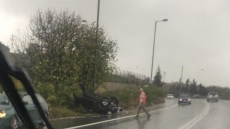 Σύμφωνα με πληροφορίες, ένα όχημα γλίστρησε σε λάδι στο οδόστρωμα με αποτέλεσμα ο οδηγός να χάσει τον έλεγχο και το όχημα να ανατραπεί.