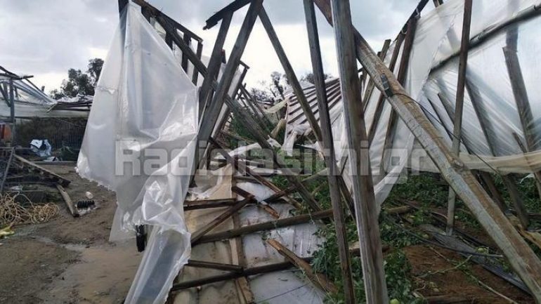 Ένας ανεμοστρόβιλος που ξέσπασε τη νύχτα στην περιοχή των Καθαράδων ανατολικά της Ιεράπετρας κατέστρεψε ολοσχερώς ένα θερμοκήπιο 7 στρεμμάτων.