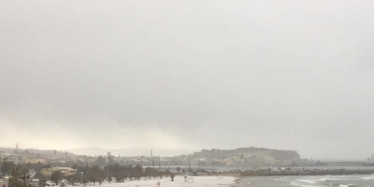 Χιόνι ακόμη και πάνω στην άμμο, στις παραλίες του Ρεθύμνου είδαν οι κάτοικοι της πόλης, λόγω του χιονιά που πλήττει τις τελευταίες ώρες πολλές περιοχές της Κρήτης.
