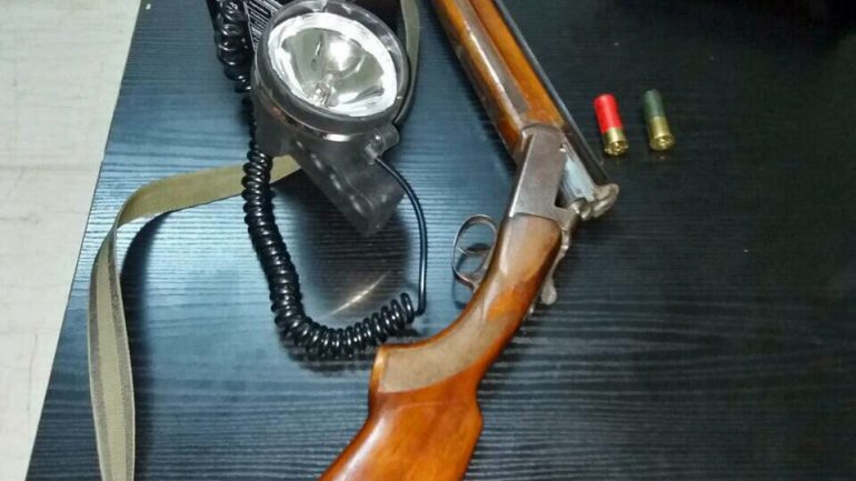 Κατασχέθηκε ένα δίκαννο, φυσίγγια, καθώς και ένα σακίδιο με προβολέα.