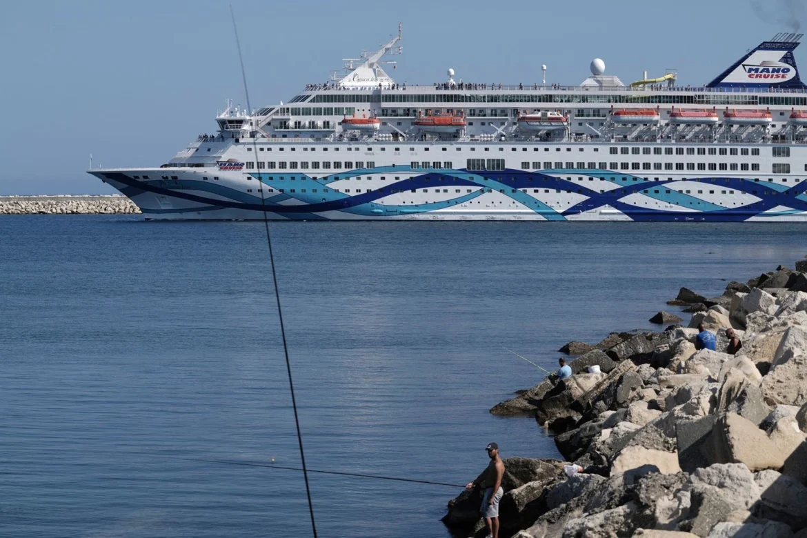Την ώρα που το κρουαζιερόπλοιο έδενε στην προβλήτα, διαδηλωτές που είχαν συγκεντρωθεί σε λόφο απέναντι από το λιμάνι ανήρτησαν παλαιστινιακές σημαίες και άναψαν καπνογόνα, θέλοντας να στείλουν ένα μήνυμα διαμαρτυρίας.
