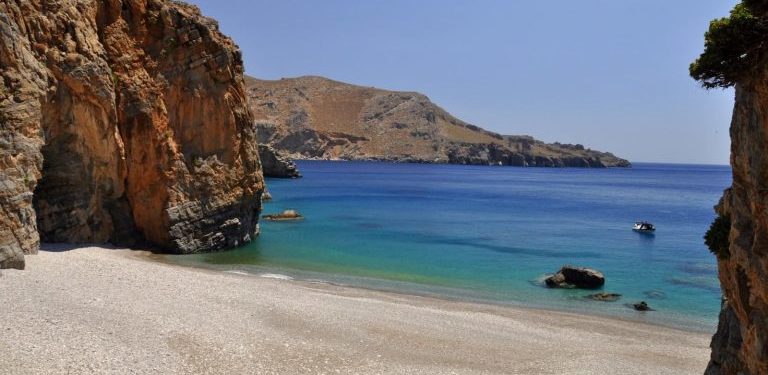Η πρόσβαση στην παραλία είναι δυνατή κυρίως μέσω της θάλασσας, καθώς το φαράγγι είναι πολύ τραχιά (υπάρχει μονοπάτι από το Pervola) και η παραλία είναι πολύ μακριά από τον πλησιέστερο δρόμο. Το πλησιέστερο λιμάνι βρίσκεται 3 χιλιόμετρα δυτικά, στις Τρεις Εκκλησιές. Η παραλία του Καμινάκι είναι βότσαλο και είναι ιδανική για απομόνωση και ψάρεμα. Εδώ, θα βρείτε συνήθως (αν κάποιος) κάτοικοι των Τριών Εκκλησιών, «βόλτα» με τα σκάφη τους. 400μ δυτικά, θα βρείτε την τραχιά παραλία στην τοποθεσία Άγιο Πνεύμα, αλλά δεν είναι τόσο όμορφη όσο το Καμινάκι.