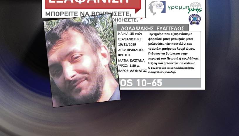 Ο Ευάγγελος Δολαψάκης είναι 35 ετών και εξαφανίστηκε στις 10 Νοεμβρίου από το Ηράκλειο Κρήτης.