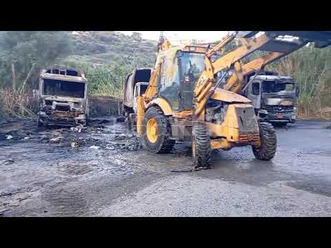 Από τη φωτιά, η οποία εκδηλώθηκε 15 λεπτά περίπου πριν τις 2 τα ξημερώματα, υπέστησαν καταστροφές 8 φορτηγά και ένα μηχάνημα έργου, που ήταν σταθμευμένα στο αμαξοστάσιο.
