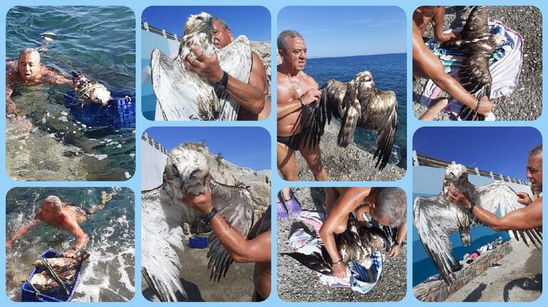 “Την στιγμή που απολαμβάναμε την καθαρή θάλασσα και το καταγάλανο ουρανό οι φίλες μου Ελένη και Κατερίνα με ενημέρωσαν ότι βρισκόταν μέσα στην θάλασσα ένα άγριο πτηνό, ίσως αετός ή κουκουβάγια! μη χάνοντας χρόνο πήγα άμεσα από ψηλά στα βράχια για να το δω, το εντόπισα και ήταν φανερά ταλαιπωρημένο αρχικά νόμιζα ότι επρόκειτο για αετό άμεσα ενημέρωσα το λιμεναρχείο Παντάνασσας για να μας βοηθήσει απαντώντας μου ότι θα έρθουν άμεσα! Και χωρίς δεύτερη σκέψη βούτηξα στο νερό με ένα αυτοσχέδιο σωσίβιο της στιγμής και με την βοήθεια και ενός ακόμη φίλου του Χρήστου το έβγαλα έξω, αφού στέγνωσα τα φτερά του και το σώμα του το σκέπασα με μια πετσέτα για να το κρατήσουμε ζεστό! Και λίγα λεπτά αργότερα έφθασε υπάλληλος του λιμεναρχείου παντάνασσας ονόματι Γιάννης, σε αυτό το σημείο θα ήθελα να τον ευχαριστήσω πολύ και εκείνον και την υπηρεσία του Λιμεναρχείου της παντάνασσας για την άμεση ανταπόκριση και το ενδιαφέρον που έδειξαν, το παρέλαβε λοιπόν και το μετέφερε στο κτηνιατρικό άγριας πανίδας, ένα πολύ μεγάλο ευχαριστώ και σε αυτούς για την μεγάλη προσφορά τους στην κοινωνία..