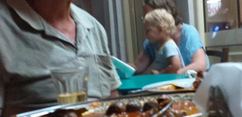 Οι γονείς του, ένα νεαρό ζευγάρι που κάθισε αργά το βράδυ στο καφενείο, ζήτησε από την ιδιοκτήτρια κάτι για να φάει.