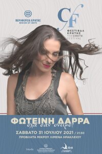 Με τη διοργάνωση της Περιφέρειας Κρήτης, η Φωτεινή Δάρρα συναντάει τη μαγεία της Κρήτης και ενώνει τη φωνή της με τον ήχο από τον παφλασμό των κυμάτων του Κρητικού Πελάγους, σε μια μουσική βραδιά σαν όνειρο με φόντο το Φρούριο Κούλε. Η συναυλία πραγματοποιείται στο Μικρό Λιμένα – απέναντι από το Φρούριο Κούλε – στο Ηράκλειο, το Σάββατο 31 Ιουλίου 2021 στις 21.30.