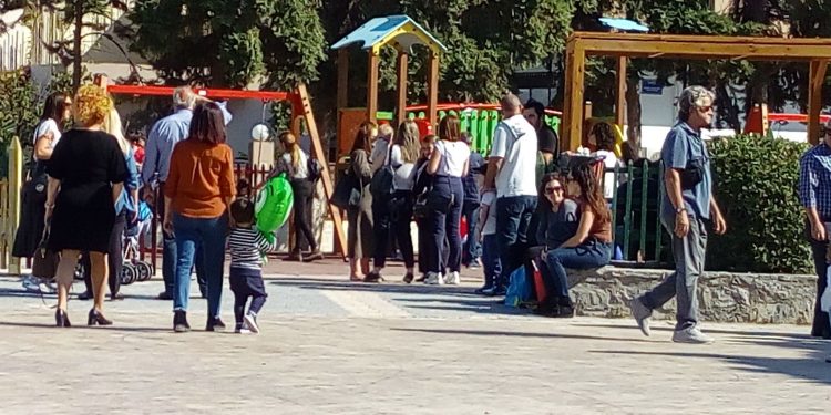 Το συντριβάνι, η πλατεία, η παιδική χαρά. Μεγάλοι και μικροί που εκμεταλλεύτηκαν την καλή μέρα για να μετατρέψουν τη μέρα σε μια μικρή εκδρομούλα.