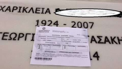 Το σχετικό σημείωμα που έφτασε στην οικογένεια από την Ανεξάρτητη Αρχή Δημοσίων Εσόδων και το οποίο απευθυνόταν στην…προγιαγιά του, έσπευσε να το προωθήσει στον…τόπο αναπαύσεώς της.
