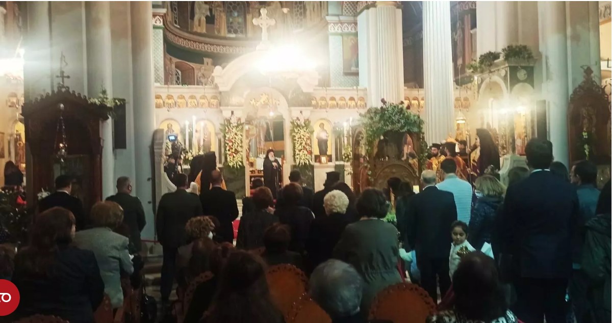 Πλήθος πιστών κατέκλυσε τον ναό στην διάρκεια της τέλεσης του εσπερινού ιερουργούντων του Αρχιεπισκόπου κκ Ευγενίου και του Επισκόπου Κνωσού κκ Μεθοδίου.