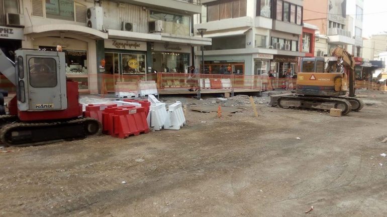 Σε αυτή τη φάση, όπως εξηγεί ο αντιδήμαρχος Τεχνικών Έργων κ. Γ. Αναστασάκης, ολοκληρώνονται οι καθαιρέσεις των πεζοδρομίων, ώστε από μεθαύριο να αρχίσουν να ανοίγονται τα χαντάκια, για να προχωρήσει εντατικά η υπογειοποίηση των δικτύων ύδρευσης του ΟΤΕ, να γίνουν οι υποδομές για την εγκατάσταση των φρεατίων και των καλωδίων των φωτιστικών. Αφού τελειώσουν οι υπόγειες υποδομές, θα γίνει η σκυροδέτηση της πλάκας, οι επιστρώσεις των πλακών και θα τοποθετηθεί ο αστικός εξοπλισμός ο οποίος δρομολογείται σε επόμενη φάση.