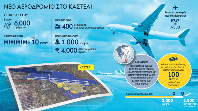 Εναγωνίως ψάχνει το ελληνικό Δημόσιο τα χρήματα της δικής του συμμετοχής για το αεροδρόμιο Καστελίου! Και ήδη έχουν προχωρήσει οι διαπραγματεύσεις με την Ευρωπαϊκή Τράπεζα Επενδύσεων για την σύναψη δανείου ύψους 180 εκατ. ευρώ, με το οποίο θα καλύψει τη χρηματοδοτική συμβολή του .