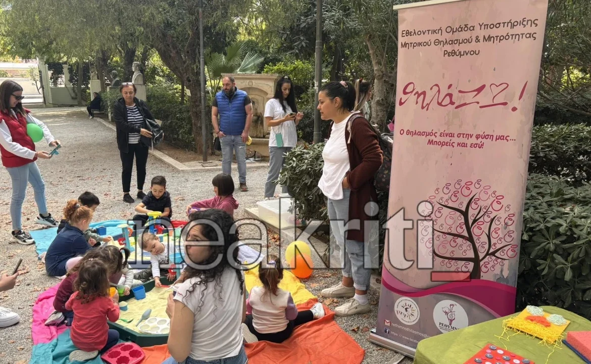 Γιορτή με την Εθελοντική Ομάδα Υποστήριξης Μητρικού Θηλασμού και Μητρότητας Ρεθύμνου, για τον μητρικό θηλασμό, τη μητρότητα και τη «βοήθεια από μητέρα σε μητέρα», τιμώντας την Εβδομάδα Μητρικού Θηλασμού, πραγματοποιήθηκε σήμερα Κυριακή στον Δημοτικό Κήπο.