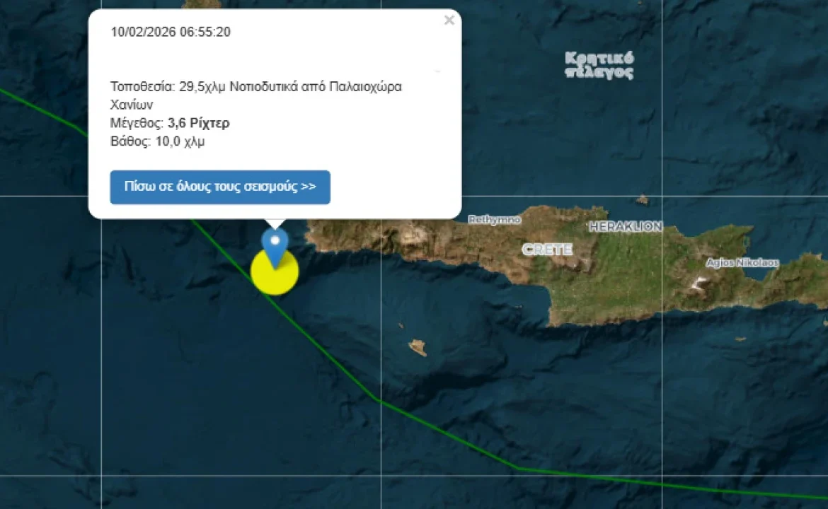 Σεισμική δόνηση μεγέθους 3,7 βαθμών της κλίμακας Ρίχτερ σημειώθηκε στις 06:55 το πρωί της Τρίτης.