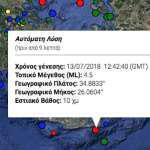 Σεισμός 4,5 βαθμών της κλίμακας ρίχτερ έγινε πριν από λίγο στην Κρήτη. Σύμφωνα με το Γεωδυναμικό Ινστιτούτο ο σεισμός είχε 10 χλμ εστιακό βάθος.