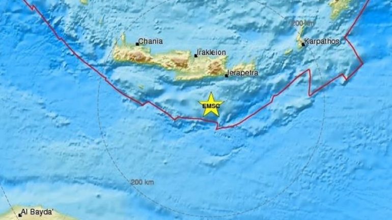 Σεισμική δόνηση μεγέθους 3,8 βαθμών της Κλίμακας Ρίχτερ – σύμφωνα με την αυτόματη λύση από τους σεισμογράφους του Γεωδυναμικού Ινστιτούτου – σημειώθηκε στις 5:56 το πρωί της Παρασκευής στο θαλάσσιο χώρο νότια της Κρήτης.