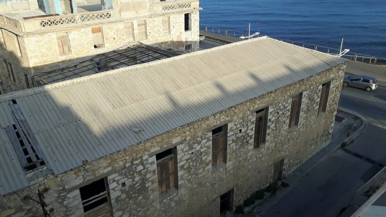 Χθες για πολλοστή φορά, με το δυνατό αέρα, έφυγαν ολόκληρα κομμάτια “Ελενίτ” από την σκεπή του “διατηρητέου” ερειπίου που βρίσκεται επί της παραλιακής λεωφόρου, δίπλα στο μαιευτήριο “Μητέρα”.
