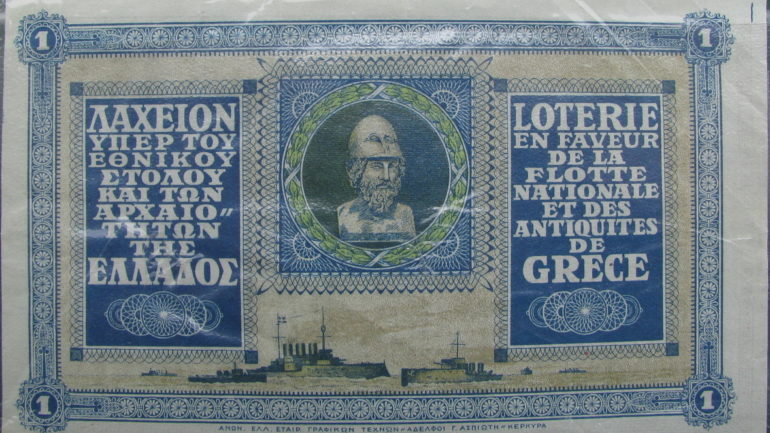 «Λαχείον του Στόλου και των Αρχαιοτήτων» (1906) το οποίο αντικαθίσταται το 1926 από το ΕΛΛΗΝΙΚΟΝ ΛΑΧΕΙΟΝ που κυκλοφορεί με δύο μορφές το «Λαϊκόν Λαχείον» και το «Μέγα Λαχείον»