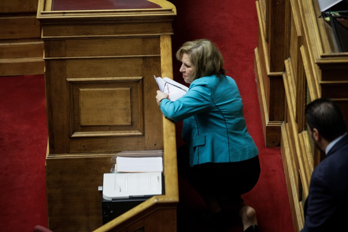 Ένα μικροατύχημα είχε στην Ολομέλεια το πρωί της Παρασκευής η βουλευτίνα του ΚΙΝΑΛ Εύη Χριστοφιλοπούλου, τη στιγμή που κατευθυνόταν προς το βήμα της Βουλής για να μιλήσει στη συζήτηση για την παροχή ψήφου εμπιστοσύνης στην κυβέρνηση.