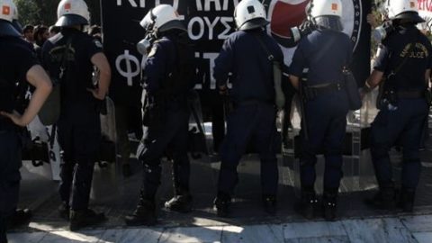 Κουκουλοφόροι πέταξαν πέτρες κατά των αστυνομικών, με τις δυνάμεις των ΜΑΤ να απαντούν με ρίψη φωτοβολίδων κρότου – λάμψης και δακρυγόνα.