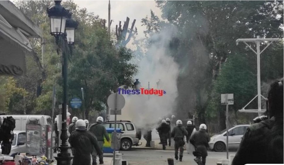 Ένταση στο κέντρο της Θεσσαλονίκης, όπου ξέσπασαν επεισόδια με μολότοφ και χημικά ανάμεσα σε κουκουλοφόρους και ΜΑΤ, κατά τη διάρκεια των κινητοποιήσεων για την ακρίβεια, όπως μεταδίδει το thesstoday.gr.