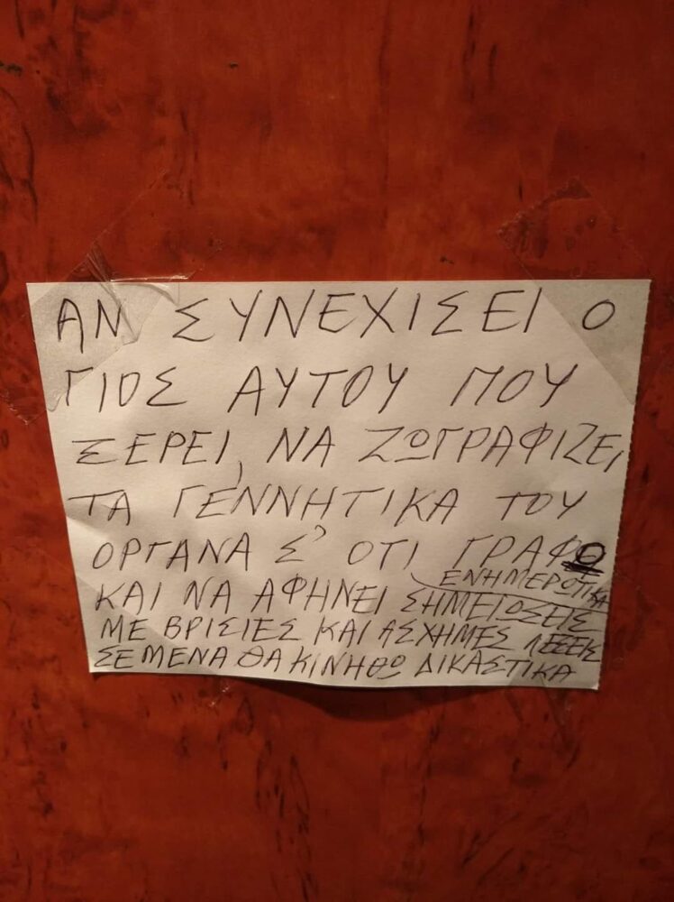 «Αν συνεχίσει ο γιος αυτού που ξέρει, να ζωγραφίζει τα γεννητικά του όργανα σε ότι γράφω ενημερωτικά και να αφήνει βρισιές και άσχημες λέξεις σε εμένα, θα κινηθώ δικαστικά»