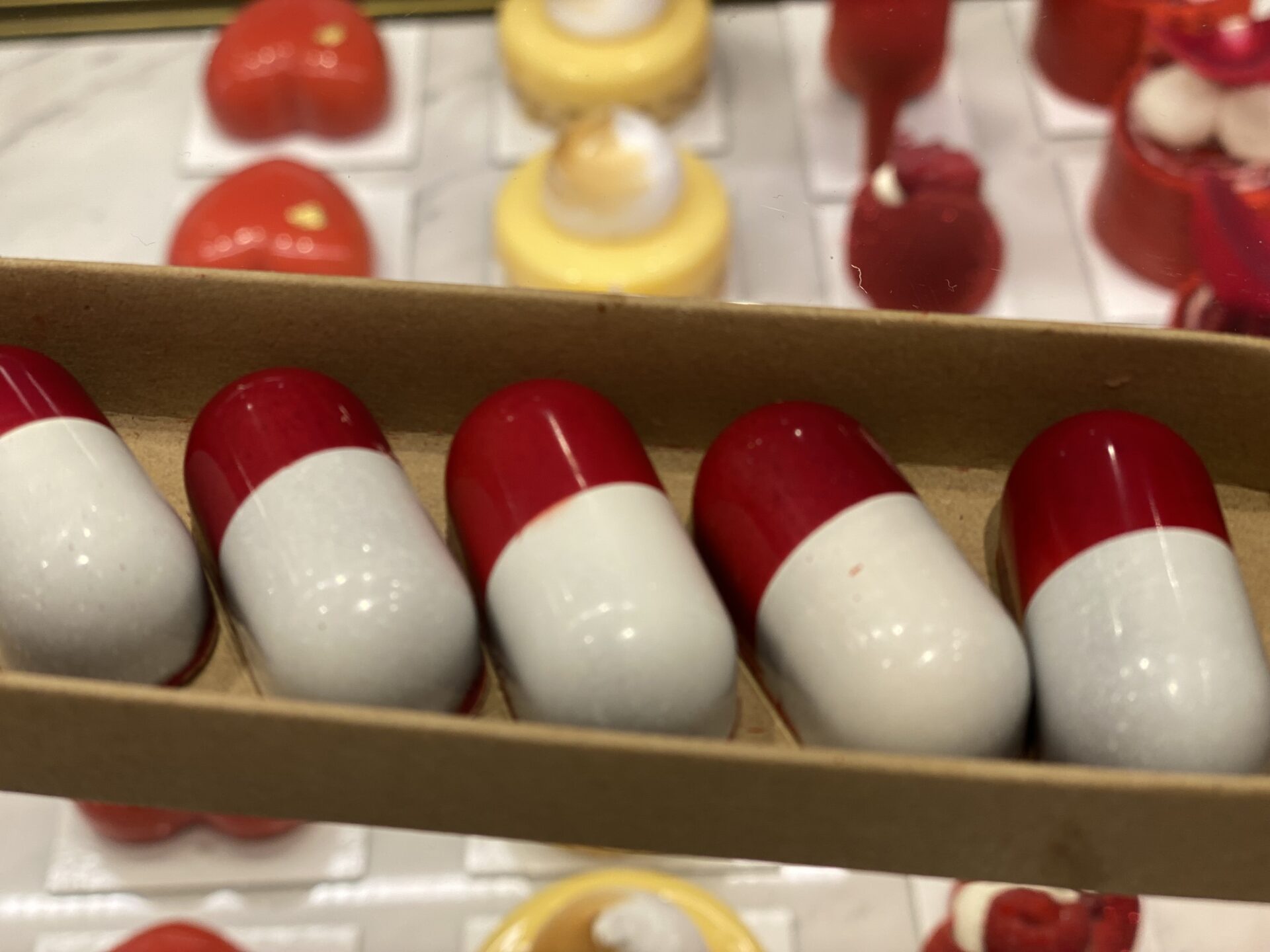«Έχουμε δημιουργήσει μια collection μόνο για την ημέρα του Αγίου Βαλεντίνου, με πρωταγωνιστή το χάπι του έρωτα», δήλωσε ο βραβευμένος pastry chef Γιώργος Αυγέρος, εξηγώντας ότι «το χάπι του έρωτα, είναι γεμιστό με gianduja -τζιαντούγια σοκολάτα φουντουκιού- και είναι μια ιδέα μου για τον Αγιο Βαλεντίνη, ένα γευστικό παιχνίδι για αυτούς που έχουν πληγωμένες καρδιές και δεν κατάφεραν να εκπληρώσουν τον έρωτα τους» και οι οποίοι «θα γευτούν ένα χάπι του έρωτα και σίγουρα θα αισθανθούν καλύτερα».