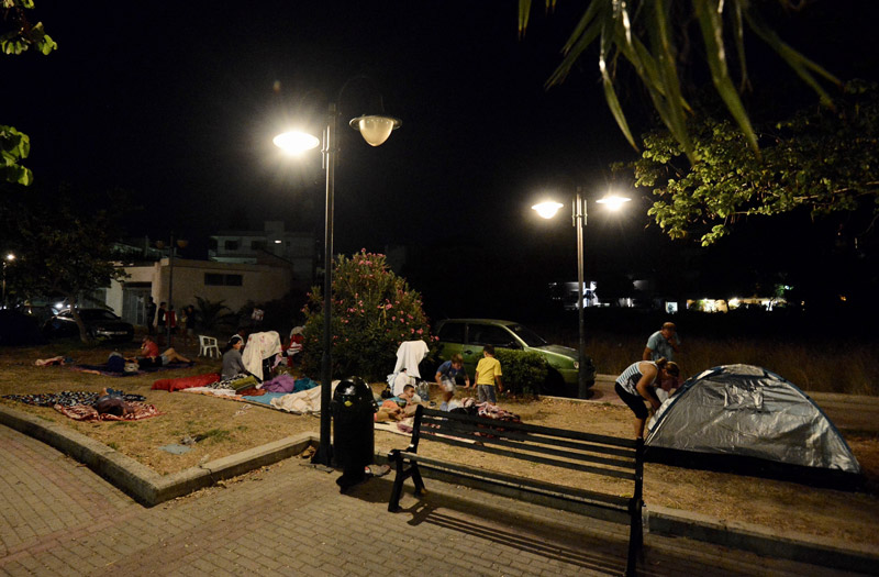 Λίγο έξω από το κέντρο, σε μικρές πλατείες οι κάτοικοι έστησαν σκηνές, πήραν κουβέρτες και σεντόνια, κάποιοι έβαλαν ακόμη και στρώματα θαλάσσης και κοιμήθηκαν με συντροφιά τα αστέρια και το φεγγάρι, φοβούμενοι πως ο Εγκέλαδος θα χτυπήσει ξανά.