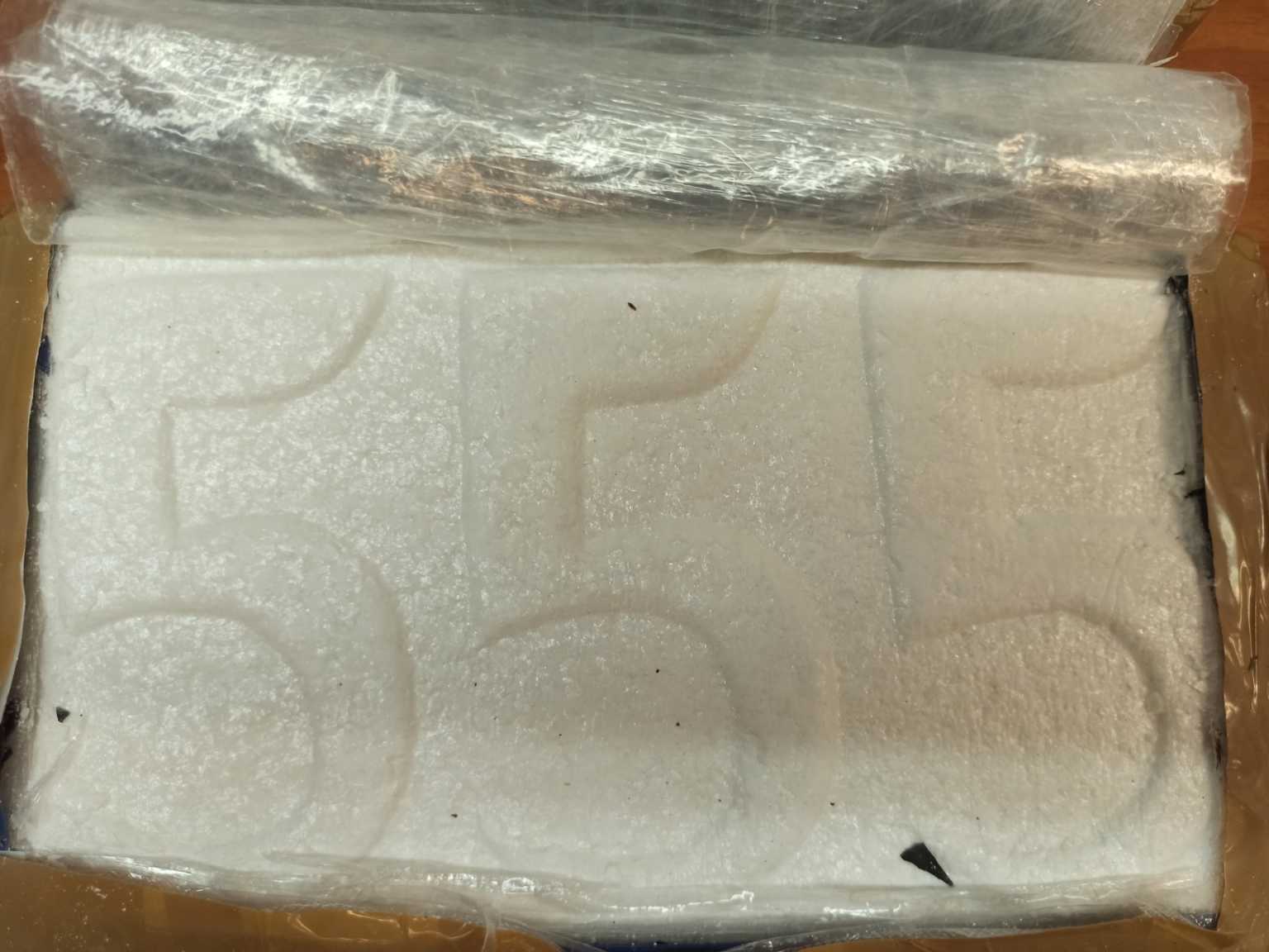 Οι συσκευασίες ήταν περιτυλιγμένες εσωτερικά με ειδικό καρμπόν προς αποφυγή εντοπισμού από συσκευές ανίχνευσης, ενώ το λογότυπο «555» πιστοποιεί ότι πρόκειται για υψηλής καθαρότητας κοκαΐνη, παρασκευασμένη σε χώρα στην Λατινική Αμερική.