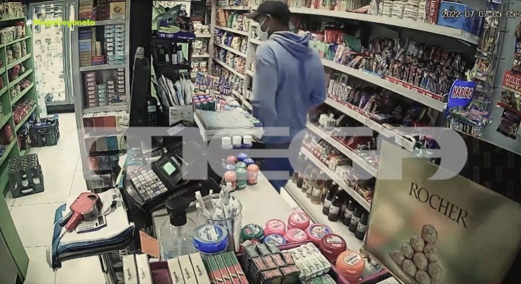 Λίγο μετά τις πέντε το πρωί ο ληστής έχοντας καλυμμένο το πρόσωπο του με καπέλο και μάσκα μπήκε στο κατάστημα.