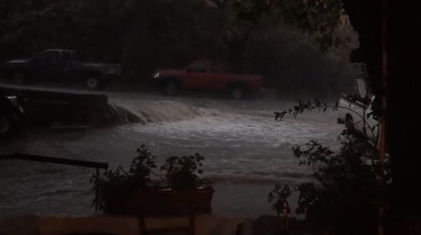 Σύμφωνα με την πρόγνωση του καιρού μάλιστα, οι έντονες καταιγίδες αναμένεται να συνεχιστούν και σήμερα στο νησί.
