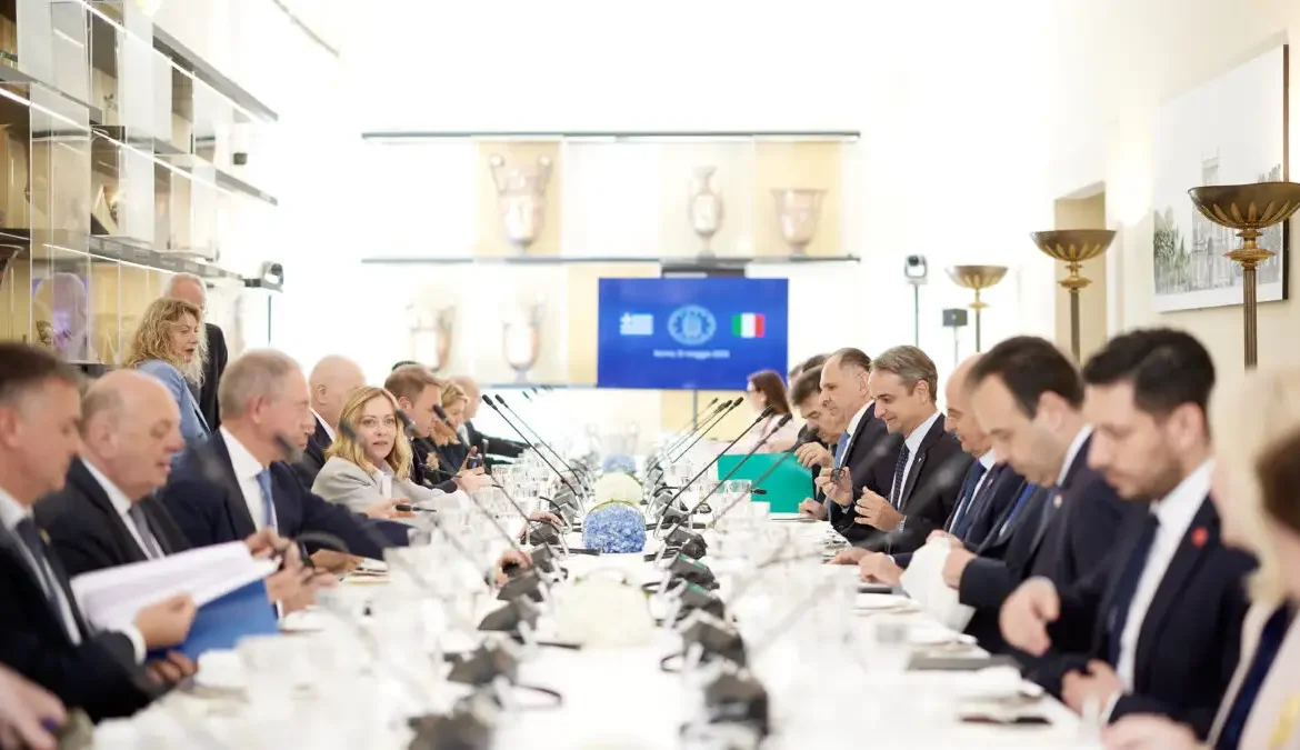 Επίσκεψη του Πρωθυπουργού Κυριάκου Μητσοτάκη στην Ιταλία, Δευτέρα 12 Μαΐου 2025. Ο Κυριάκος Μητσοτάκης συναντήθηκε με την Πρωθυπουργό της Ιταλίας Giorgia Meloni και στην συνέχεια συνεδρίασε το Ανώτατο Συμβούλιο Συνεργασίας Ελλάδας – Ιταλίας / (ΔΗΜΗΤΡΗΣ ΠΑΠΑΜΗΤΣΟΣ/ΓΡΑΦΕΙΟ ΤΥΠΟΥ ΠΡΩΘΥΠΟΥΡΓΟΥ/EUROKINISSI)