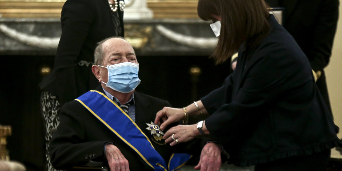 Η Πρόεδρος της Δημοκρατίας Κατερίνα Σακελλαροπούλου επέδωσε το Παράσημο του Μεγαλόσταυρου του Τάγματος της Τιμής στον εφοπλιστή Ιάκωβο Τσούνη, για τη σημαντική προσφορά του, ιδιαιτέρως για τη συμβολή του στην ενίσχυση των Ενόπλων Δυνάμεων.