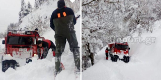 Στην επιχείρηση επιστρατεύθηκε το ερπυστριοφόρο όχημα της 7ης ΕΜΑΚ με επικεφαλής τον Υποδιοικητή της Σίμο Αποστόλου, ωστόσο έξω από τα Πουγκάκια χρειάστηκε να περπατήσουν 3 χιλιόμετρα μέσα στο χιόνι που έφτανε το 1,5 μέτρο για να προσεγγίσουν τον συνοικισμό Βλάχικος (στα 1100 μέτρα) και να δώσουν τα φάρμακα που ήταν απαραίτητα για τον παππού.
